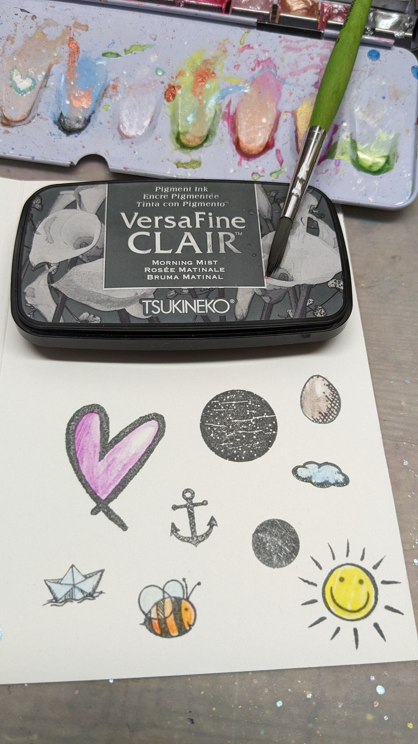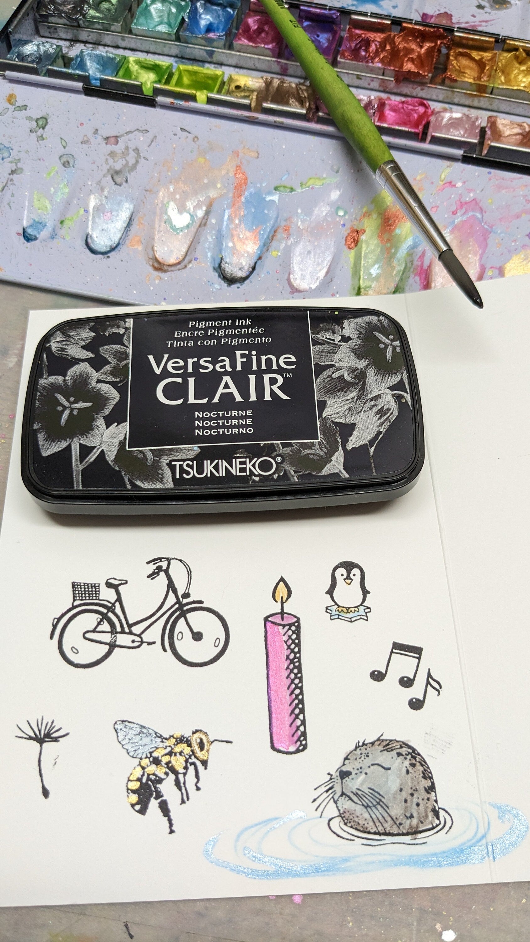 Mit dem VersaFine-CLAIR - Stempelkissen können auch größere Motiv-Stempel betupft werden.